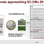 2014년 Huawei가 예상한 Cellular IoT(NB-IoT로 생각하면 될 듯) 모듈 가격 정보이다. 칩 가격이 USD 1 이하, 모듈 가격이 USD 4 이하로 예상했는데, 지금 시장에서의 가격은 어떨까 생각해본다. 지금 당장은 아래 예상 가격과는 차이가 날 것으로 보인다.하지만, 물량이 모든 것을 설명하는 이 시장에서는 일반적인 예상보다 빨리 USD 5 수준으로 떨어지리라 믿는다. Sss14boland Neul de Justin Hayward http://cwbackoffice.co.uk/Presentation/Wirelessly_Connecting_IoT_19.06.14_RobertYoung.pdf